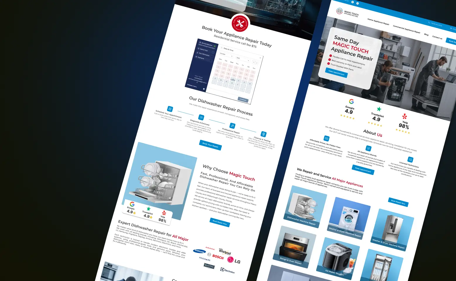 For Magic Touch Appliance Doctors, we delivered a full-cycle project — building the brand foundation and a modern website focused on lead generation, trust, and long-term SEO scalability.
